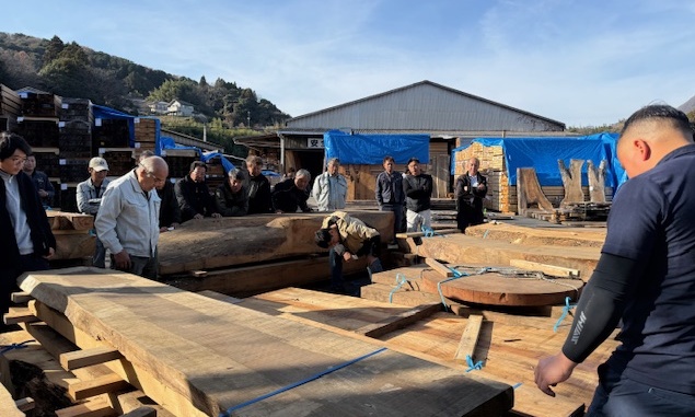 長さ5.2m、巾50cm、厚みが9cmの銘木板です。