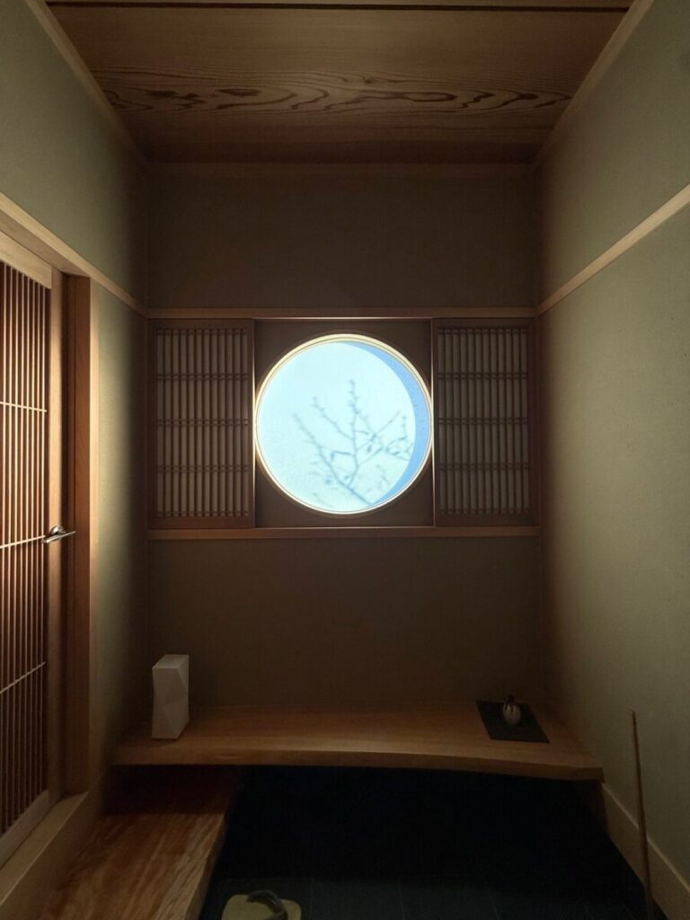 花水木の枝が丸窓に映写されてました!