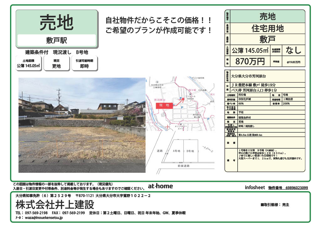 B号地 145.05㎡ 870万円 更地